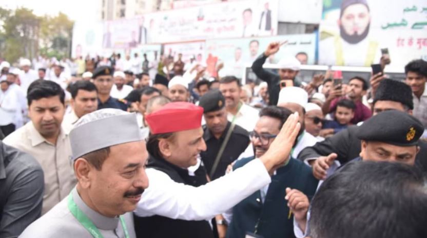 मुबारकबाद देने ऐशबाग ईदगाह पहुंचे अखिलेश यादव