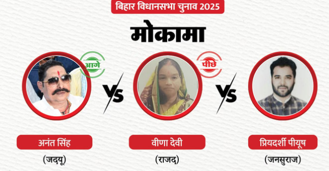 मोकामा में तेरहवें राउंड की गिनती में जदयू प्रत्याशी अनंत सिंह 49299 वोटों के साथ बढ़त बनाए हुए हैं। जबकि राजद प्रत्याशी वीणा देवी 33053 वोटों के साथ दूसरे नंबर पर हैं।