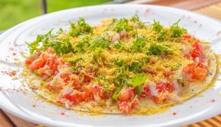 – सभी पापड़ पर बारी-बारी कर बारीक कटा प्याज , टमाटर और हरा धनिया डालें।