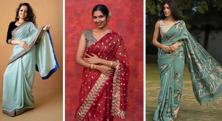 साड़ी को टाइमलेस क्लासिक जाता है, इसे किसी भी फंक्शन में पहना जा सकता है। इसे पहनकर महिलाएं अपना जलवा बिखेरती है। आजकल महिलाओं ने इसे नए अंदाज में पहनकर फैशन स्टेटमेंट बना दिया है। बेल्ट के साथ स्टाइलिश लुक, धोती और पैंट स्टाइल का फ्यूजन टच, फ्रंट पल्लू और स्कर्ट ड्रेप से ट्रेडिशनल ग्लैमर, रफल और गाउन स्टाइल से मॉडर्न एलिगेंस, वहीं केप और जैकेट स्टाइल से रॉयल लुक मिलता है।