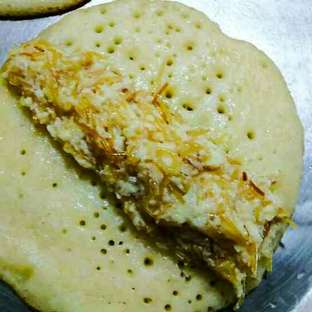 -अब एक बोल में अखरोट, किशमिश, चिरौंजी, अपनी पसंद के अन्य नट्स को डेढ़ टेबलस्पून चीनी और बटर के साथ मिक्स करें। अब एक चम्मच में इसे लेकर पैनकेक के बबल वाले हिस्से में इसे रखें और फिर उसे आधा फोल्ड करते हुए कोनों को बंद कर दें।