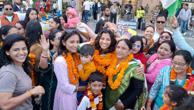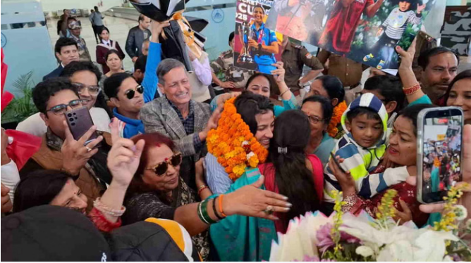 भारत के महिला क्रिकेट विश्व कप जीतने के बाद पहली बार देहरादून एयरपोर्ट पहुंची ऑल राउंडर स्नेह राणा का देहरादून एयरपोर्ट पर ढोल नगाड़ों के साथ स्वागत किया। स्नेह राणा सनौला, देहरादून की रहने वाली हैं। भारतीय महिला क्रिकेट टीम में ऑलराउंडर स्नेहा राणा ने देहरादून एयरपोर्ट पर कहा कि टीम इंडिया की कड़ी मेहनत से विश्व कप जीत पाए हैं।