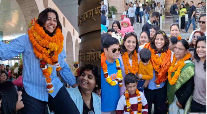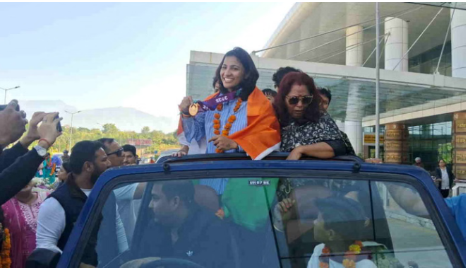 उत्तराखंड: दून एयरपोर्ट पर स्नेह राणा का ढोल नगाड़ों से स्वागत