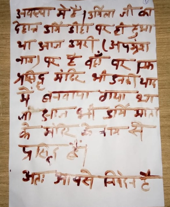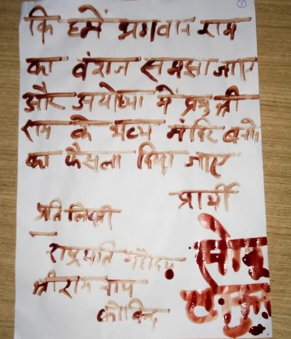 उमरी के सोनू ठाकुर ने खून से लिखा है कि मैं भगवान राम का वंशज हूं। उमली बेगम गंज जहां का मैं निवासी हूं पहले इसका नाम उर्मिलापुरी था। उर्मिला लक्ष्मण की पत्नी थी। उनका यहां ससुराल था। इसके अलावा और साक्ष्य भी है मेरे पास। जब मुगल शासक आए यहां का नाम बदल दिया गया।