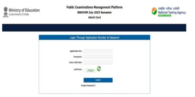 अब ‘Download Admit Card for SWAYAM Exam (July, 2025) Semester’ लिंक पर क्लिक करें।