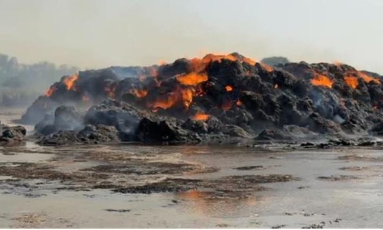 करनाल में किसान के गन्ने की पाती का स्टॉक जलकर राख, 35 लाख का भारी नुकसान