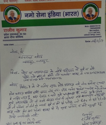 कानपुर शहर में राष्ट्रपति के आगमन से पहले रिश्तेदार को पाकिस्तान से मिली धमकी…