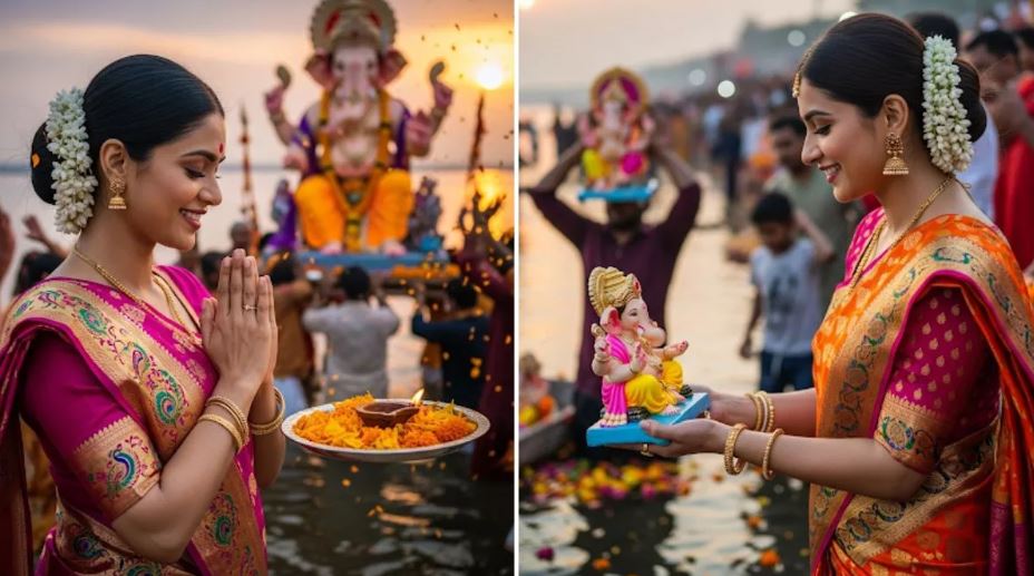 इन दिनों गणेश उत्सव की धूम चारों ओर देखने को मिल रही है। मुंबई में ये पर्व तो बड़े ही धूमधाम से मनाया जाता है। 6 सितंबर को बप्पा को बड़े ही धूमधाम से विदाई दी जाएगी। जो न केवल एक धार्मिक परंपरा है, बल्कि उत्साह, भक्ति और सांस्कृतिक रंगों से भरा एक खास मौका भी होता है। इस दिन की रौनक देखने लायक होती है। बप्पा को विदाई देने के लिए लोग अपने लुक का भी खास ध्यान रखते हैं।