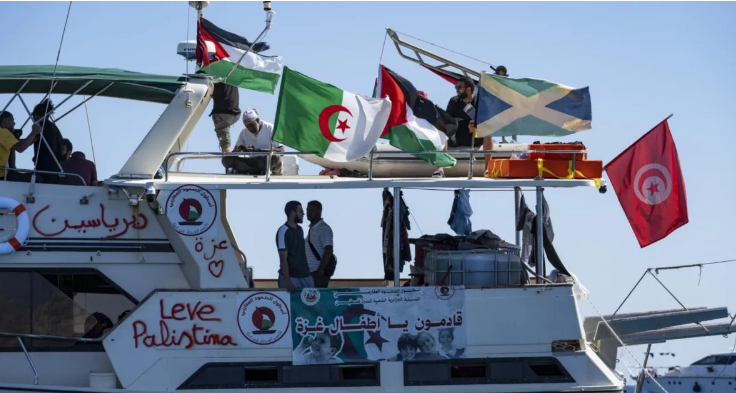 गाजा के लिए खाद्य सामग्री लेकर जा रहे यूरोपीय देशों के 50 जहाजों के काफिले में कुछ अज्ञात जहाजों के शामिल होने की आशंका है। इजरायली युद्धपोतों ने गाजा के नजदीक घेराबंदी कर ली है और जहाजों की संचार व्यवस्था बाधित करने की भी सूचना है। काफिले में सांसद मानवाधिकार संगठनों के सदस्य और ग्रेटा थनबर्ग भी शामिल हैं।