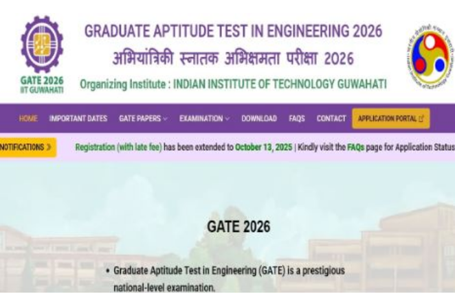 आईआईटी गुवाहाटी की ओर से ग्रेजुएट एप्टीट्यूड टेस्ट इन इंजीनियरिंग (GATE 2026) के लिए आवेदन की लास्ट डेट (लेट फीस के साथ) 13 अक्टूबर तक एक्सटेंड की गई है। ऐसे में जो छात्र इस परीक्षा में शामिल होना चाहते हैं और किसी कारणवश अभी तक फॉर्म नहीं भर सके हैं वे बिना देरी करते हुए तुरंत ही ऑफिशियल वेबसाइट gate2026.iitg.ac.in पर जाकर फॉर्म भर सकते हैं। कल के बाद एप्लीकेशन विंडो बंद कर दी जाएगी।