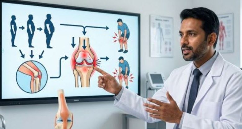 हाल ही के अध्ययनों से एक गंभीर स्वास्थ्य समस्या सामने आई है। जिन लोगों का बॉडी मास इंडेक्स (BMI) 30 से ज्यादा है, उनके कूल्हों और घुटनों पर सामान्य वजन वाले लोगों की तुलना में चार गुना तक ज्यादा दबाव पड़ता है। यह अतिरिक्त दबाव जोड़ों के घिसने की प्रक्रिया को बहुत तेज कर देता है, जिससे ऑस्टियोआर्थराइटिस जैसी बीमारी होती है। भारत के शहरी इलाकों में यह समस्या अब बहुत आम होती जा रही है।