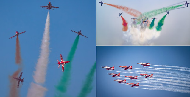 लाल और सफेद रंग के हॉक Mk-132 जेट विमानों पर उड़ान भरने वाली यह टीम अपनी सटीकता, समन्वय और साहसिक करतबों के लिए जानी जाती है। प्रदर्शन के दौरान लूप, तेज बैरल रोल, उलटी उड़ान और ‘डीएनए’ एरोबैटिक संरचना जैसे कौशल देखने को मिलेंगे। हर संरचना पायलटों की प्रशिक्षण क्षमता और टीमवर्क को दर्शाती है।