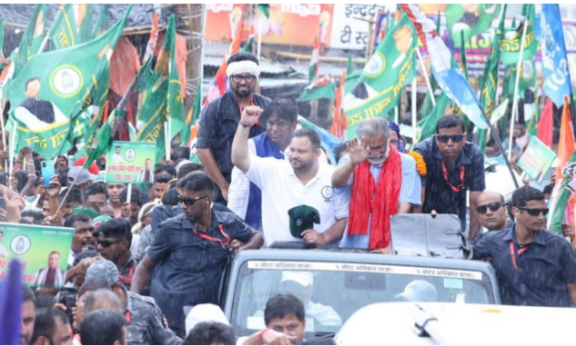 तेजस्वी यादव ने आरोप लगाया कि यह लोग वोट चोर चुनाव में वोट चुरा सरकार बना लेते है। 20 वर्षों से सत्ता का मजा ले रहे भ्रष्टाचारियों को गणतंत्र की जननी बिहार से गणतंत्र को खत्म नहीं होने देंगे। इस बार लडेंगे भी, रोकेंगे भी और जीतेंगे भी। उन्होंने दावा किया गया कि हमारे संग समूचा बिहार खड़ा है। हमलोग किसी वोट का अधिकार नहीं छीनने देंगे।