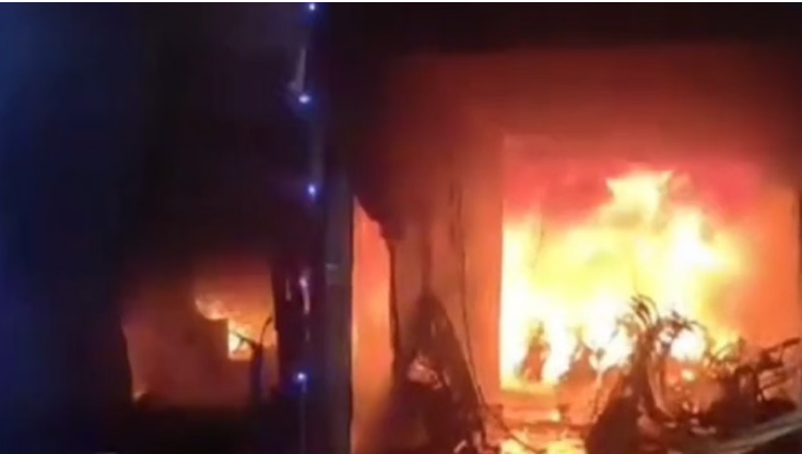 दिवाली की रात ई-स्कूटी शोरूम में भीषण आग, 70 वाहन और 100 बैटरी जलकर राख