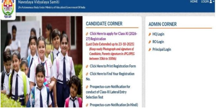 JNVST 2026 क्लास 9 एवं 11वीं में एडमिशन के लिए आवेदन की लास्ट डेट को कल तक के लिए एक्सटेंड किया गया है। ऐसे में जो माता-पिता अपने बच्चों को नवोदय विद्यालय में प्रवेश दिलवाना चाहते हैं और किसी कारणवश अभी तक फॉर्म नहीं भर सके हैं वे अब 23 अक्टूबर तक आवेदन प्रक्रिया पूर्ण कर सकते हैं। एप्लीकेशन फॉर्म केवल ऑनलाइन ऑनलाइन माध्यम से नवोदय विद्यालय समिति कीऑफिशियल वेबसाइट navodaya.gov.in पर जाकर भरा जा सकता है।