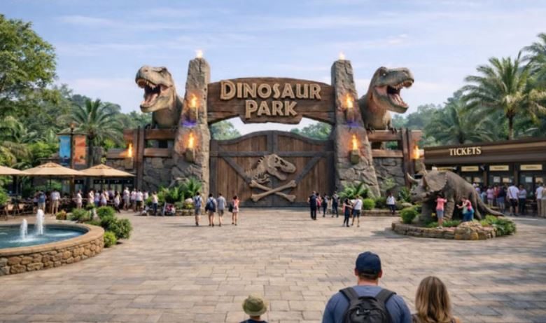 प्रवेश द्वार को जुरासिक गेट के रूप में विकसित किया जाएगा। इसके बाद पर्यटक डायनासोर की हड्डियों जैसी संरचना वाली सुरंग से गुजरेंगे। पूरे पार्क को छह अलग-अलग विषयगत क्षेत्रों में विभाजित किया जाएगा, जिनमें टी-रेक्स जोन, विश्राम क्षेत्र, बच्चों का खेल क्षेत्र और डेंजर जोन शामिल हैं।