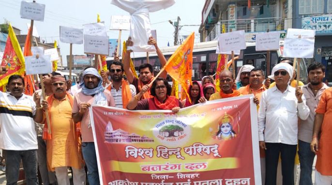 पश्चिम बंगाल में हिंदुओं पर हो रहे कथित अत्याचार और पलायन के विरोध में सोमवार को विश्व हिंदू परिषद के बैनर तले शिवहर नगर में आक्रोश मार्च निकाला गया। यह पैदल मार्च पुरानी सिनेमा हॉल से शुरू होकर रजिस्ट्री चौक, ब्रह्मस्थान चौक, गांधी चौक, राजस्थान चौक, पेट्रोल पंप, खादी भंडार होते हुए मुख्य मार्ग से जीरो माइल चौक तक पहुंचा, जहां यह एक सभा में तब्दील हो गया। इस दौरान ‘राष्ट्रपति शासन लागू हो’ के नारे भी लगाए गए।