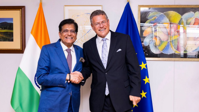 पीयूष गोयल ने एक्स पर एक पोस्ट में लिखा, मैंने ब्रसेल्स की अपनी यात्रा समाप्त की। ईयू के व्यापार और आर्थिक सुरक्षा आयुक्त शेफकोविक के साथ व्यापक भारत-यूरोपीय संघ मुक्त व्यापार समझौते को आगे बढ़ाने पर गहन लेकिन बहुत उत्पादक बातचीत हुई। इन चर्चाओं से हमारे अधिकांश लंबित मुद्दे सुलझ गए हैं और हमने एक ऐसा ढांचा तैयार किया है जो हमारी अर्थव्यवस्थाओं के लिए लाभकारी साबित होगा।
