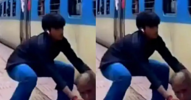 प्लेटफॉर्म पर रील बना रहा था लड़का, तभी पीछे ट्रेन से उतर रहे बुजुर्ग का फिसला पैर
