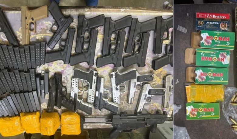 पुलिस ने 2 किलो 160 ग्राम हेरोइन (4 पैकेट),11 ग्लॉक पिस्टल व 22 मैगजीन,1 बरेटा पिस्टल व 1 मैगजीन ,5 जिगाना पिस्टल व 10 मैगजीन, 3 नॉरिंको पिस्टल व 5 मैगजीन,1 गफ्फर सिक्योरिटी पिस्टल व 1 मैगजीन, कुल 20 पिस्टल, 39 मैगजीन, एक गन और लगभग 310 जिंदा कारतूस बरामद किए हैं।