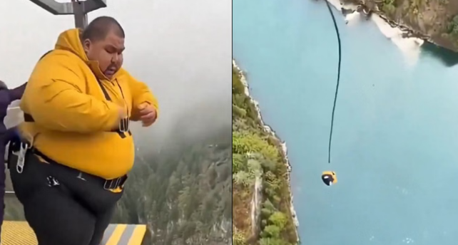 बंजी जंपिंग कर रहा था मोटा शख्स, जैसे ही गया नीचे अचानक से टूटी रस्सी