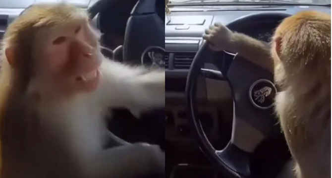 बंदर ने सड़क पर चलाई कार, पलभर में इंटरनेट पर मचा हड़कंप