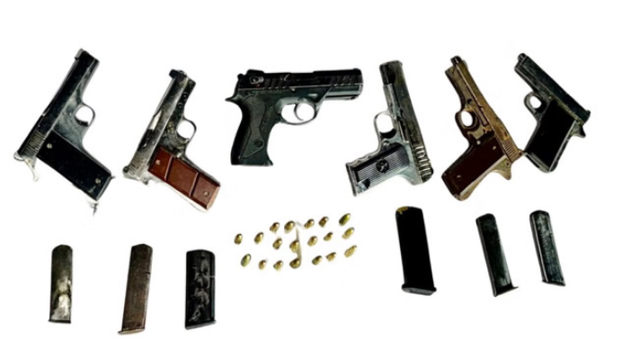 पुलिस ने आरोपियों के कब्जे से कुल 6 पिस्तौलें (एक पीएक्स5, चार .32 बोर और एक .30 बोर पिस्तौल) और 19 जिंदा कारतूस बरामद किए हैं।