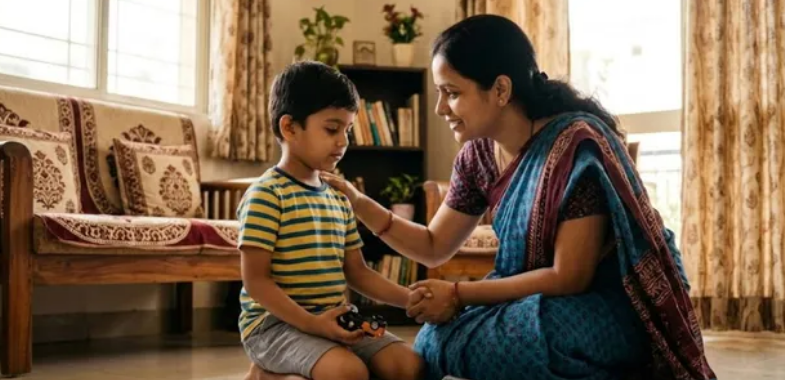 जब बच्चा कोई गलती करे, तो तुरंत भड़कने के बजाय एक गहरी सांस लें और खुद को शांत करें। बच्चों के पास अपनी हर हरकत का अपना एक मासूम सा कारण होता है। उनसे प्यार से पूछें, “बेटा, आपने ऐसा क्यों किया?” जब आप उनकी बात ध्यान से सुनते हैं, तो उन्हें लगता है कि आप उन्हें समझ रहे हैं। इससे उनका आप पर भरोसा बढ़ता है।