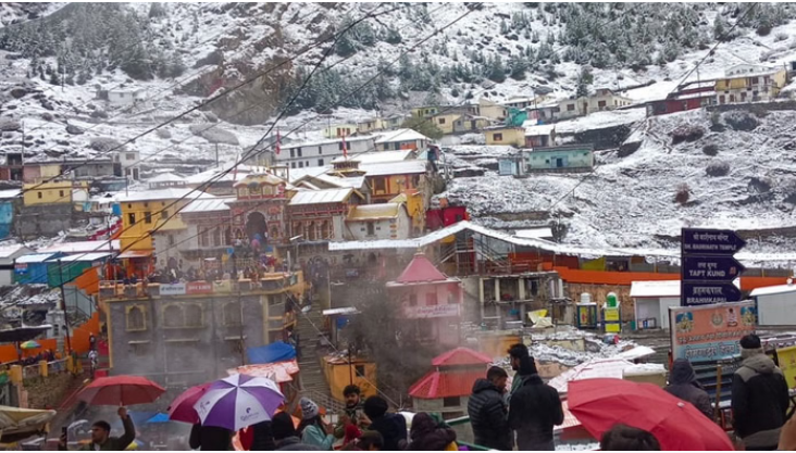 बदरीनाथ धाम में हुई बर्फबारी, चारों तरफ बिछी सफेद चादर