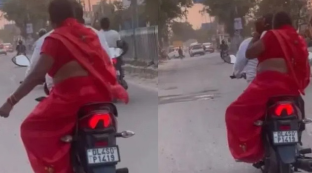 बाइक पर बैठी आंटी का ठनका माथा, चलती गाड़ी पर कर दिया तगड़ा क्लेश