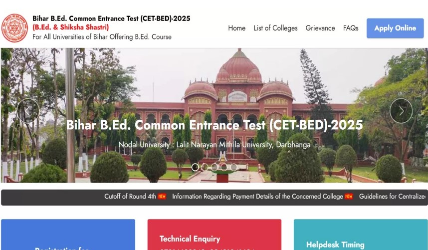 ललित नारायण मिथिला विश्वविद्यालय (LNMU) की ओर से बिहार बीएड कॉमन एंट्रेंस टेस्ट की चौथे राउंड की मेरिट लिस्ट जारी कर दी गई है। जिन उम्मीदवारों ने चौथे राउंड की काउंसलिंग के लिए आवेदन किया था, अब वे जल्द ही आधिकारिक वेबसाइट पर जाकर अपना रिजल्ट देख सकते हैं। बता दें, चौथे राउंड की मेरिट लिस्ट आधिकारिक वेबसाइट biharcetbed-lnmu.in पर पीडीएफ फॉर्म में जारी कर दी गई है। उम्मीदवार लॉगिन क्रेडेंशियल को दर्ज करके लिस्ट में अपने रोल नंबर के साथ-साथ आवंटित कॉलेज का नाम भी देख सकते हैं।