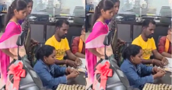 जब बजरंग राम भगत स्कूटी खरीदने शोरूम पहुंचे तो वहां मौजूद सभी लोग हैरान रह गए, उन्होंने करीब 40 हजार रुपये के 10 और 20 रुपये के सिक्के बोरी में भरकर लाए थे। बाकी रकम नोटों में दी। शोरूम स्टाफ के लिए यह एक अनोखा अनुभव था, लेकिन किसान की भावना देखकर शोरूम मालिक ने खुद भी सहयोग दिखाया और अपनी टीम को सिक्के गिनने के काम में लगा दिया। बताया जाता है कि सिक्कों की गिनती में करीब तीन घंटे का समय लगा। पूरा स्टाफ मिलकर गिनती करता रहा और इस बीच पिता-पुत्री दोनों मुस्कुराते हुए इंतजार करते रहे। आखिरकार जब रकम पूरी गिनी गई तो स्कूटी का सौदा पूरा हुआ। वीडियो में देखा जा सकता है कि बजरंग राम भगत अपनी बेटी के साथ स्कूटी शोरूम में बैठे हैं और चारों ओर कर्मचारी सिक्के गिनने में व्यस्त हैं। जैसे ही स्कूटी की डिलीवरी होती है। चंपा की खुशी देखने लायक होती है, उसने बताया कि अब वह इस स्कूटी से घर के कामों में मदद करेगी और परिवार के लिए जरूरत की चीजें लाने-ले जाने में काम आएगी।