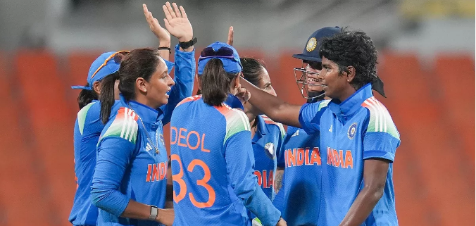 भारत की तरफ से क्रांति गौड़ सबसे सफल गेंदबाज रही, जिन्होंने 5 ओवर में 31 रन देकर तीन विकेट झटके। इसके अलावा रेनूका सिंह, अरुंधती रेड्डी, श्री चरणी और स्नेह राणा को एक-एक विकेट मिला।