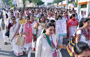 लखनऊ। सिटी मोन्टेसरी स्कूल के लगभग तीन हजार शिक्षक/शिक्षिकाओं व कार्यकर्ताओं ने आज ‘गाँधी जयन्ती एवं अन्तर्राष्ट्रीय अहिंसा दिवस’ की पूर्व संध्या पर ‘प्रभात फेरी’ निकालकर राष्ट्रपिता महात्मा गाँधी के विचारों को आत्मसात करने एवं उनके सपनों को साकार करने का अभूतपूर्व उत्साह जगाया। प्रभात फेरी की अगुवाई कैबिनेट मंत्री रीता बहुगुणा जोशी ने की। इस विशाल प्रभात फेरी में सी.एम.एस. संस्थापक व प्रख्यात शिक्षाविद् डा. जगदीश गांधी व डा. भारती गाँधी, सी.एम.एस. प्रेसीडेन्ट प्रो. गीता गाँधी किंगडन, सी.एम.एस. के डायरेक्टर ऑफ स्ट्रेटजी रोशन गाँधी समेत विभिन्न कैम्पस की प्रधानाचार्याओं एवं विभिन्न क्षेत्रों की प्रख्यात हस्तियों ने शामिल होकर ‘वसुधैव कुटुम्बकम’ का अलख जगाया। ‘जय जगत’ एवं ‘वसुधैव कुटुम्बकम’ का संदेश लिखे दुग्ध धवल सफेद खादी वस्त्रों में सुसज्जित सी.एम.एस. शिक्षकों का यह विशाल ‘अहिंसा मार्च’ देखने लायक था। सी.एम.एस. शिक्षकों की यह प्रभात फेरी गोमती नगर एक्सटेंशन स्थित मकदूमपुर पुलिस चौकी से सी.एम.एस. गोमती नगर (द्वितीय कैम्पस) ऑडिटोरियम तक निकाली गई।