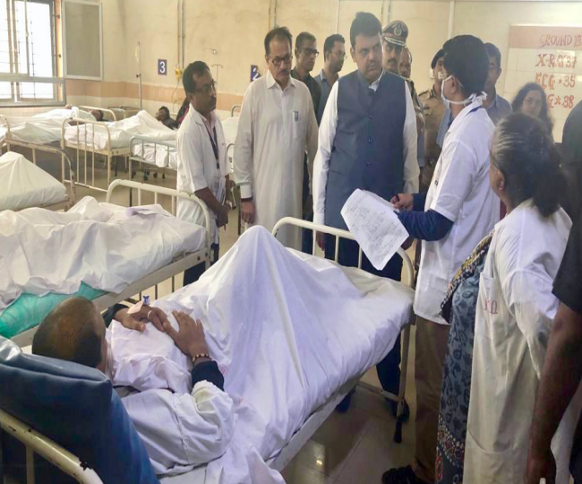 मलाड़ में दीवार गिरने से घायल हुए लोगों का हाल जानने शताब्दी अस्पताल पहुंचे सीएम देवेन्द्र फडणवीस।