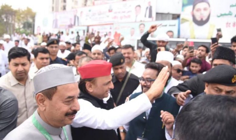 मुबारकबाद देने ऐशबाग ईदगाह पहुंचे अखिलेश यादव