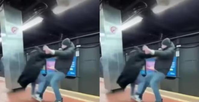 मेट्रो स्टेशन पर हुई भयंकर लड़ाई, लड़ते-लड़ते ट्रैक पर जा गिरा शख्स