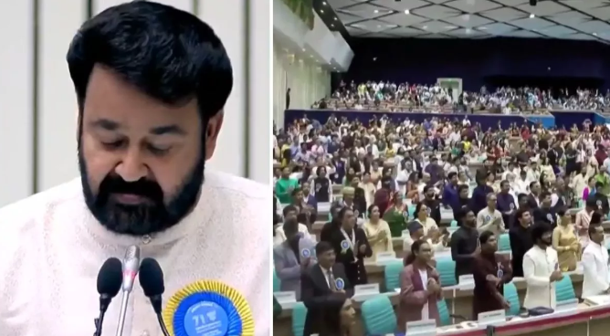 इस मौके पर 65 वर्षीय सुपरस्टार मोहनलाल को साउथ सिनेमा में अपने कंट्रीब्यूशन के लिए दादा साहेब फाल्के अवॉर्ड से सम्मानित किया गया। उन्हें राष्ट्रपति द्रौपदी मुर्मु ने इस स्पेशल अवॉर्ड से सम्मानित किया। इस खास मौके पर उनकी स्पीच ने सभी का दिल जीत लिया और साथ ही जब वह इस खास पुरस्कार को लेने जा रहे थे, तो उनके सम्मान में वहां मौजूद लोग खड़े हो गए।