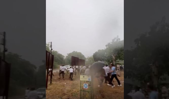 इस दौरान NSUI और RSS समर्थक आमने-सामने आ गए। स्थिति बिगड़ती देख पुलिस को हस्तक्षेप करना पड़ा और बारिश के बीच लाठीचार्ज कर भीड़ को तितर-बितर किया गया। इस दौरान छह छात्रों को चोटें आईं, वहीं 12 NSUI कार्यकर्ताओं को हिरासत में लिया गया। पुलिस के अनुसार NSUI कार्यकर्ताओं ने बिना अनुमति यूनिवर्सिटी परिसर में घुसकर कार्यक्रम में व्यवधान डाला। वहीं NSUI नेताओं ने आरोप लगाया कि पुलिस ने RSS के दबाव में आकर छात्रों पर बर्बरता की और उनकी गाड़ियों में भी तोड़फोड़ की गई। छात्र नेता महेश चौधरी और नीरज खींचड़ ने पुलिस और संघ कार्यकर्ताओं पर मारपीट का आरोप लगाया और कहा कि यूनिवर्सिटी कैंपस शिक्षा का स्थान है, इसे राजनीतिक गतिविधियों से दूर रखा जाना चाहिए।घटना के बाद पुलिस ने यूनिवर्सिटी कैंपस से NSUI कार्यकर्ताओं को खदेड़ते हुए कार्यक्रम स्थल को खाली कराया। संघ की ओर से जारी बयान में कहा गया कि यह कार्यक्रम विजयादशमी और संघ के शताब्दी वर्ष के अवसर पर आयोजित किया गया था, जिसमें करीब 600 छात्र, शिक्षक और स्वयंसेवक शामिल हुए। नगर संघचालक रविशंकर चौधरी के अनुसार, कार्यक्रम के दौरान NSUI और बाहरी अराजक तत्वों ने हमला करने की कोशिश की, लेकिन पुलिस ने समय रहते हालात पर काबू पा लिया।