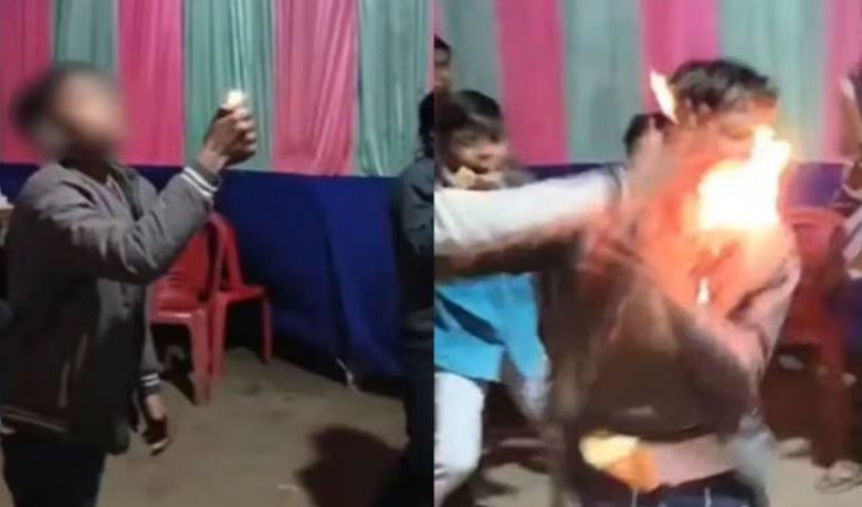 वायरल वीडियो में साफ दिख रहा है कि एक बच्चा केरोसिन (मिट्टी का तेल) मुंह में भरकर लाइटर की आग पर थूकता है, ताकि बड़ा फ्लेम बनाया जा सके। लेकिन वो जैसे ही तेल उगलता है, आग बेकाबू हो जाती है और सीधे उसके चेहरे को चपेट में ले लेती है। कुछ ही पल में उसका पूरा चेहरा आग से घिर जाता है। यह घटना किसी आयोजना का है, जहां पर टेंट लगा हुआ है। आसपास मौजूद लोग तुरंत आग बुझाने के लिए दौड़ते हैं, लेकिन तब तक लड़का घायल हो गया होता है। बच्चे के चेहरे पर गंभीर जलन के निशान पड़ चुके थे।