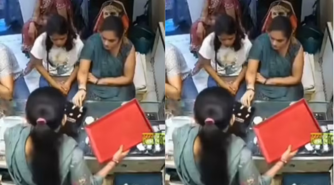 वीडियो में देखा जा सकता है कि दो महिलाएं एक ज्वेलरी शॉप में ग्राहक बनकर आती हैं। वे दुकानदार से सोने की अंगूठियां दिखाने को कहती हैं। दुकानदार उन्हें अंगूठियों का एक केस दिखाती है और फिर किसी काम से थोड़ी देर के लिए पीछे मुड़ जाती है।