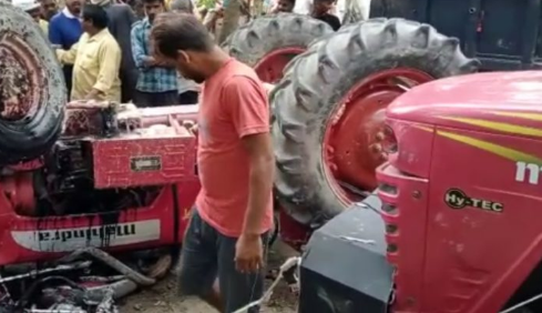 लोगों से खचाखच भरे बाजार में अचानक पलटी ट्रैक्टर ट्रॉली, कई लोग दबे