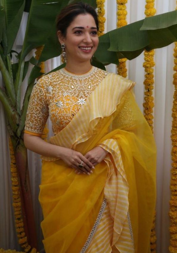 अगर आप कुछ रॉयल और ग्रेसफुल लुक चाहती हैं, तो येलो साड़ी बेस्ट ऑप्शन है। चाहे वह कॉटन साड़ी हो या शिफॉन, येलो साड़ी हर एज ग्रुप पर जचती है।