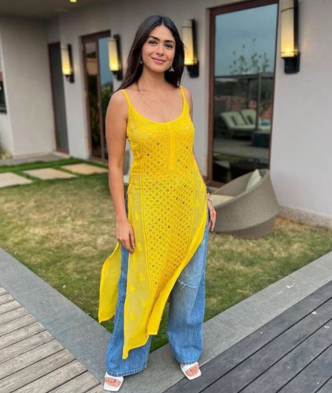 अगर आप कुछ लाइट और मॉडर्न लुक चाहती हैं, तो येलो कुर्ती को जींस या फ्लेयर्ड स्कर्ट के साथ पेयर कर सकती हैं। यह कॉलेज या ऑफिस पूजा के लिए भी एक अच्छा ऑप्शन है।