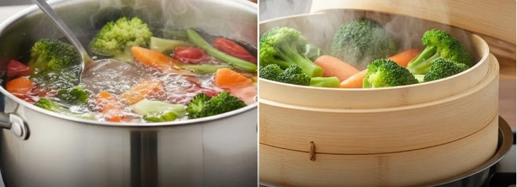 अगर आपका मुख्य उद्देश्य सब्जियों से ज्यादा से ज्यादा पोषक तत्व प्राप्त करना है, तो भाप में पकाना सबसे बेहतर तरीका है। यह सब्जियों को धीरे से पकाती है, उनके पोषण, रंग और स्वाद को बरकरार रखती है। इसलिए, अगली बार जब आप सब्जियां पकाएं, तो उन्हें पानी में उबालने के बजाय, स्टीमर या किसी जालीदार बर्तन की मदद से भाप में पकाकर देखिए।