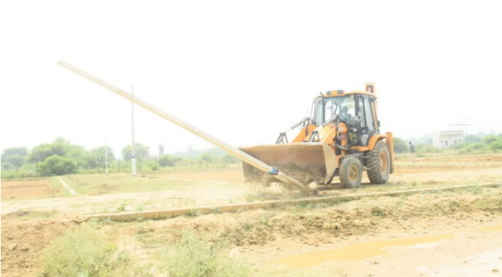 आगरा के मौजा बाबरपुर स्थित गाटा संख्या-एक पर हो रहे अवैध निर्माण पर नगर निगम ने बुलडोजर चला दिया। भूमि को लेकर सुनील नामक व्यक्ति का नगर निगम के साथ न्यायालय में वाद विचाराधीन है। इसके बावजूद उसने जमीन पर दीवार खड़ी कर कब्जा करने का प्रयास किया। निगम ने बन रही दीवार को जमींदोज कराने के साथ ही निर्माण सामग्री को भी जब्त कर लिया।