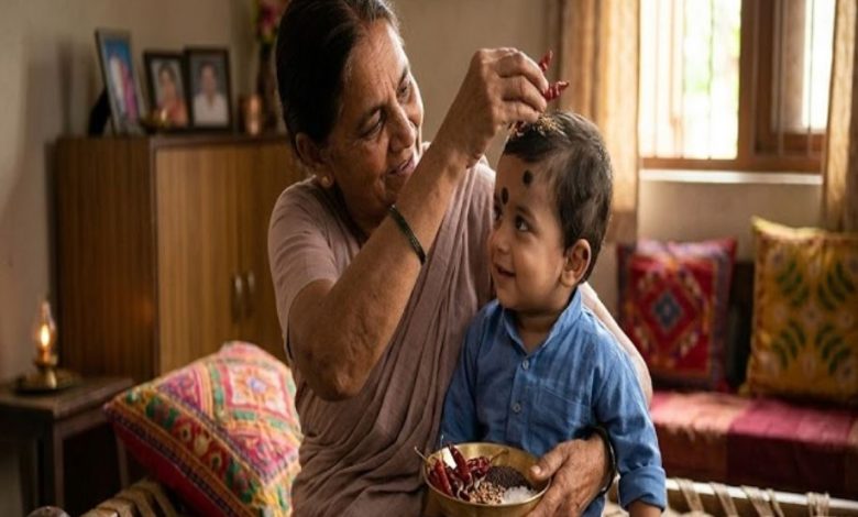 होलिका दहन की रात एक छोटे कपड़े में थोड़ी सी पीली सरसों, नमक और सूखी लाल मिर्च बांधकर बच्चे के सिर से पैर तक 7 बार वार लें। वारने के बाद इस पोटली को जलती हुई होलिका की अग्नि में डाल दें। जैसे-जैसे वह सामग्री जलेगी, बच्चे पर लगी नजर और नकारात्मकता भी उसी आग में जल जाएगी।