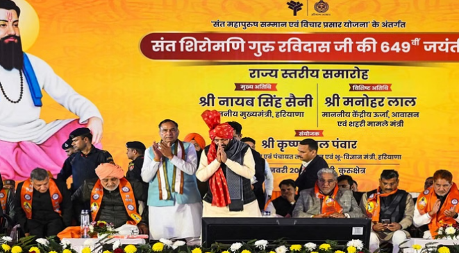ये एलान मुख्यमंत्री नायब सैनी ने शनिवार को उमरी गांव में आयोजित संत गुरु रविदास जी की 649वीं जयंती पर राज्य स्तरीय समारोह को संबोधित करते हुए किया। समारोह को केंद्रीय उर्जा मंत्री मनोहर लाल ने भी ऑनलाइन संबोधन किया।