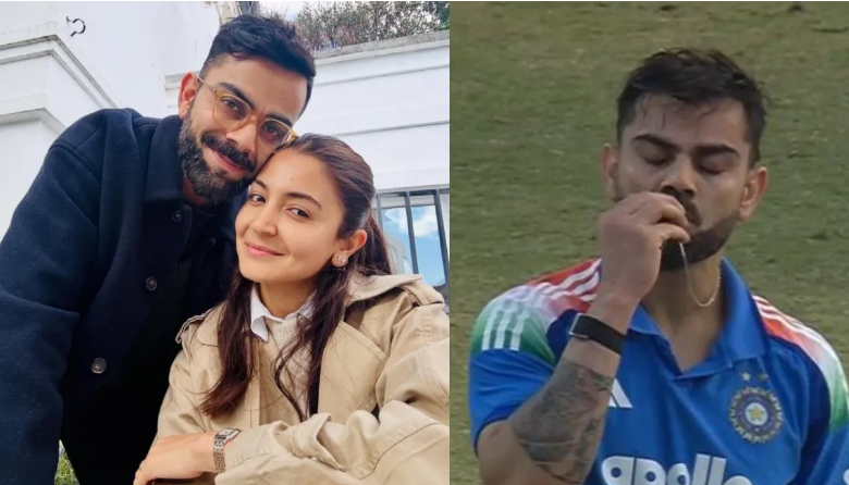 सोशल मीडिया पर विराट कोहली की तस्वीरें वायरल हो रही हैं जिसमें वह मैच के बाद अपनी वेडिंग रिंग को किस करते हुए नजर आ रहे हैं। यही नहीं, विराट ने क्रिकेट के मैदान में ही अपनी पत्नी को वीडियो कॉल भी मिला दिया और दोनों एक-दूसरे से बात करते हुए दिखाई दिए।