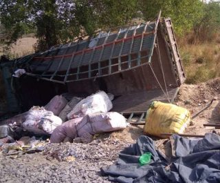 गुरुवार भोर पहर कानपुर से लोहे के पाइप लादकर डीसीएम ट्रक प्रयागराज की ओर जा रहा था। ट्रक चालक सोनेलाल निवासी अथसराएं जनपद कौशांबी के साथ खलासी केबिन में बैठे थे। कपड़ों की गांठ के साथ फेरी लगाने वाले सात व्यापारी डीसीएम के के पीछे पाइप के ऊपर बैठे थे। खागा के कटोघन चौराहे से पहले अगला टायर फटने से डीसीएम पलट गई। लोहे के पाइप के नीचे 43 वर्षीय मुमताज निवासी तालेपुर जलालपुर प्रयागराज, 45 वर्षीय निसार अहमद निवासी फतूहा सराएं इनायत प्रयागराज, 42 वर्षीय शहजाद अहमद की दबकर मौत हो गई।